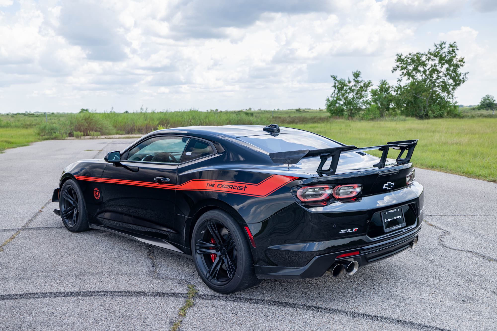 This 2023 Chevrolet Camaro ZL1 for sale is an upgraded version of the stock Chevrolet Camaro ZL1 with VIN 1G1FK1R63P0135350. It produces 1,000 horsepower and 966 lb-ft of torque, making it one of the most powerful muscle cars on the market. The stock Chevrolet Camaro ZL1 comes with a 6.2L V8 engine that produces 650 horsepower and 650 lb-ft of torque. The Hennessey upgrade adds an upgraded supercharger, Custom HPE Camshaft, high-flow air induction system, and other performance-enhancing components. The result is a significant increase in power and torque, which translates into improved acceleration, handling, and braking. The Hennessey EXORCIST Chevrolet Camaro ZL1 is a great choice for anyone who wants a powerful and menacing muscle car.