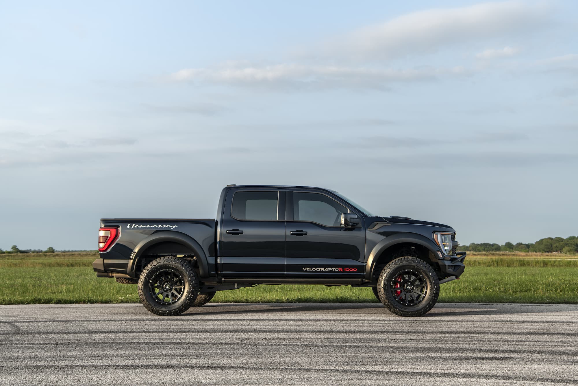 This 2023 Ford Raptor R for Sale is a modified version of the stock Raptor R by Hennessey. It comes with performance enhancements including an upgraded 3.8-liter supercharger, high-flow air induction, billet fuel rails, a heavy-duty supercharger belt, upgraded fuel lines, an air / oil separator system, plus Hennessey’s engine management calibration. The VelociRaptoR 1000 delivers 1,043 bhp to achieve with supercar-like performance. Hennessey’s super truck hits 60 mph from standing in just 3.1 seconds, and blasts a ¼ mile time of just 11.4 seconds @ 122 mph.