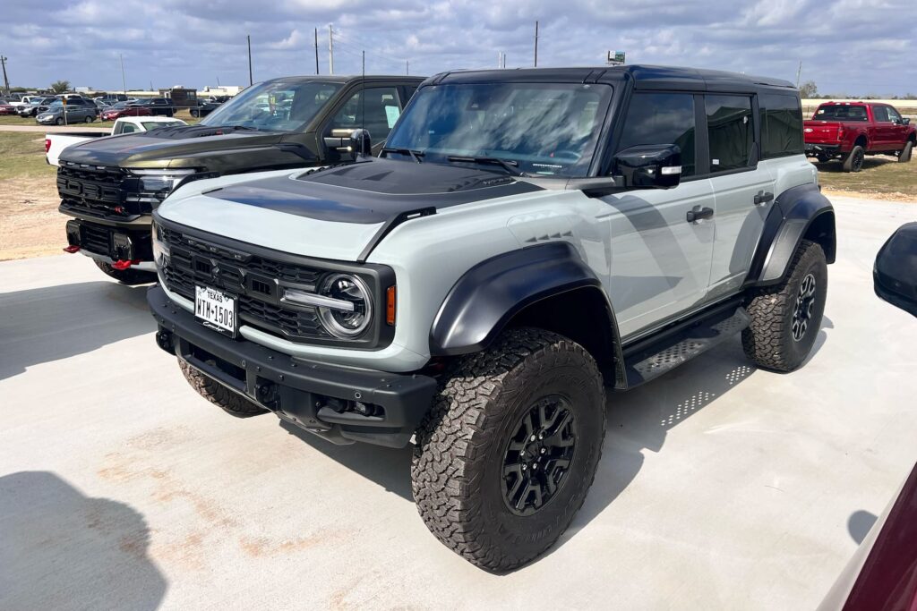 This 2024 Ford Bronco Raptor for sale comes in Cactus Gray color, has VIN 1FMEE0RR8RLB33072, and is a supercharged version of the stock Ford Bronco Raptor that produces 500 horsepower and 550 lb-ft of torque, making it one of the most powerful off-road SUVs on the market. The stock Ford Bronco Raptor comes with a 3.0L Twin-Turbocharged V6 engine that produces 418 horsepower and 440 lb-ft of torque. The Hennessey upgrade adds 20″ Hennessey wheels, 37″ Off-Road tires, and other performance-enhancing components. The result is a significant increase in power and torque, which translates into improved acceleration, handling, and braking. The Hennessey VelociRaptor 500 Ford Bronco Raptor is a great choice for anyone who wants a powerful and luxurious SUV. It offers the best of both worlds: performance and refinement.