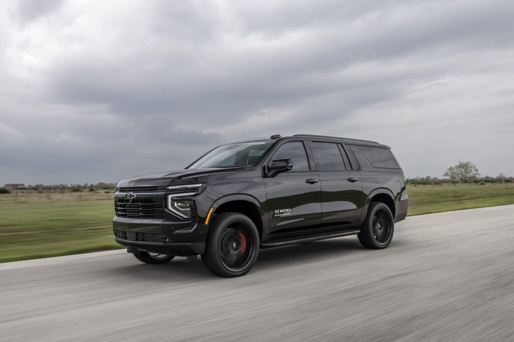 This 2025 Chevrolet Suburban for Sale comes in Black color, has the VIN 1GNS6ERLXSR197718, and is upgraded with the Hennessey H600 performance package. Hennessey’s engineering team fits GM’s popular 6.2-liter V8 (L87 EcoTec3) with a robust supercharger, air to water intercooler system, and a sport touring catback exhaust system. The engine management software is updated with HPE engine management calibration.