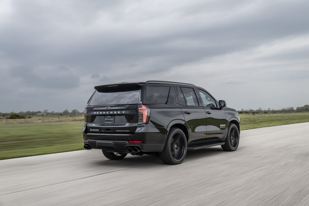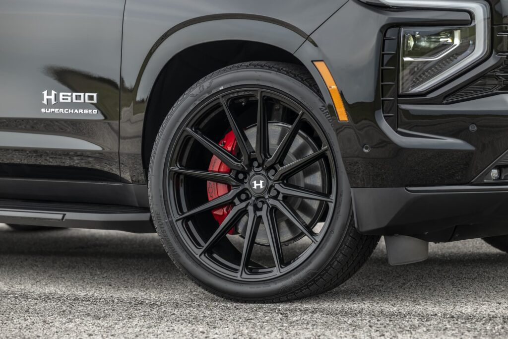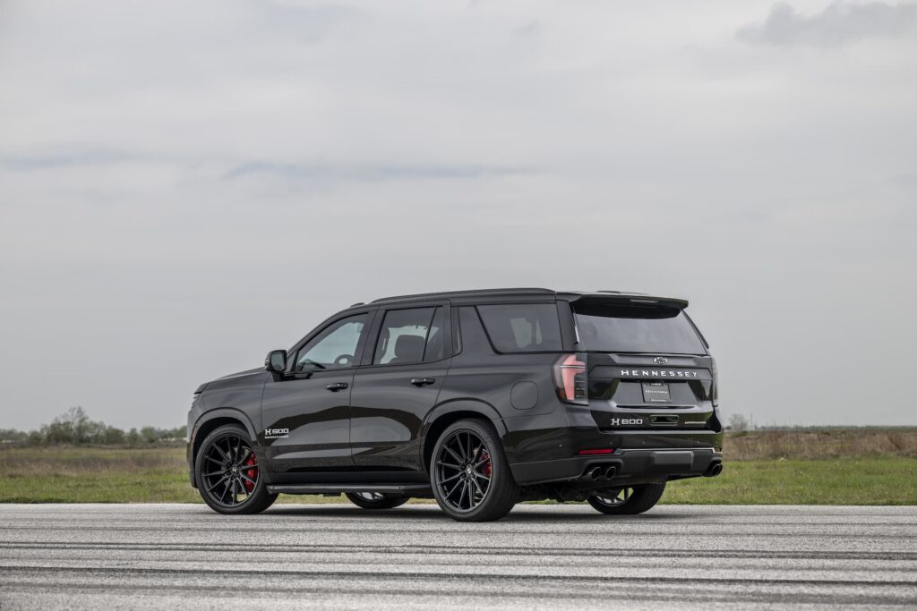 This 2025 Chevrolet Tahoe for sale comes in Black exterior color, has VIN 1GNS6RRL6SR184651, and is a supercharged version of the stock Chevrolet Tahoe that produces 625 horsepower and 633 lb-ft of torque, making it one of the most powerful SUVs on the market. Hennessey’s engineering team fits GM’s popular 6.2-liter V8 (L87 EcoTec3) with a robust supercharger system, high-flow intake system, high-flow intercooler, and a crankcase ventilation system. The engine management software is updated with HPE engine management calibration.
