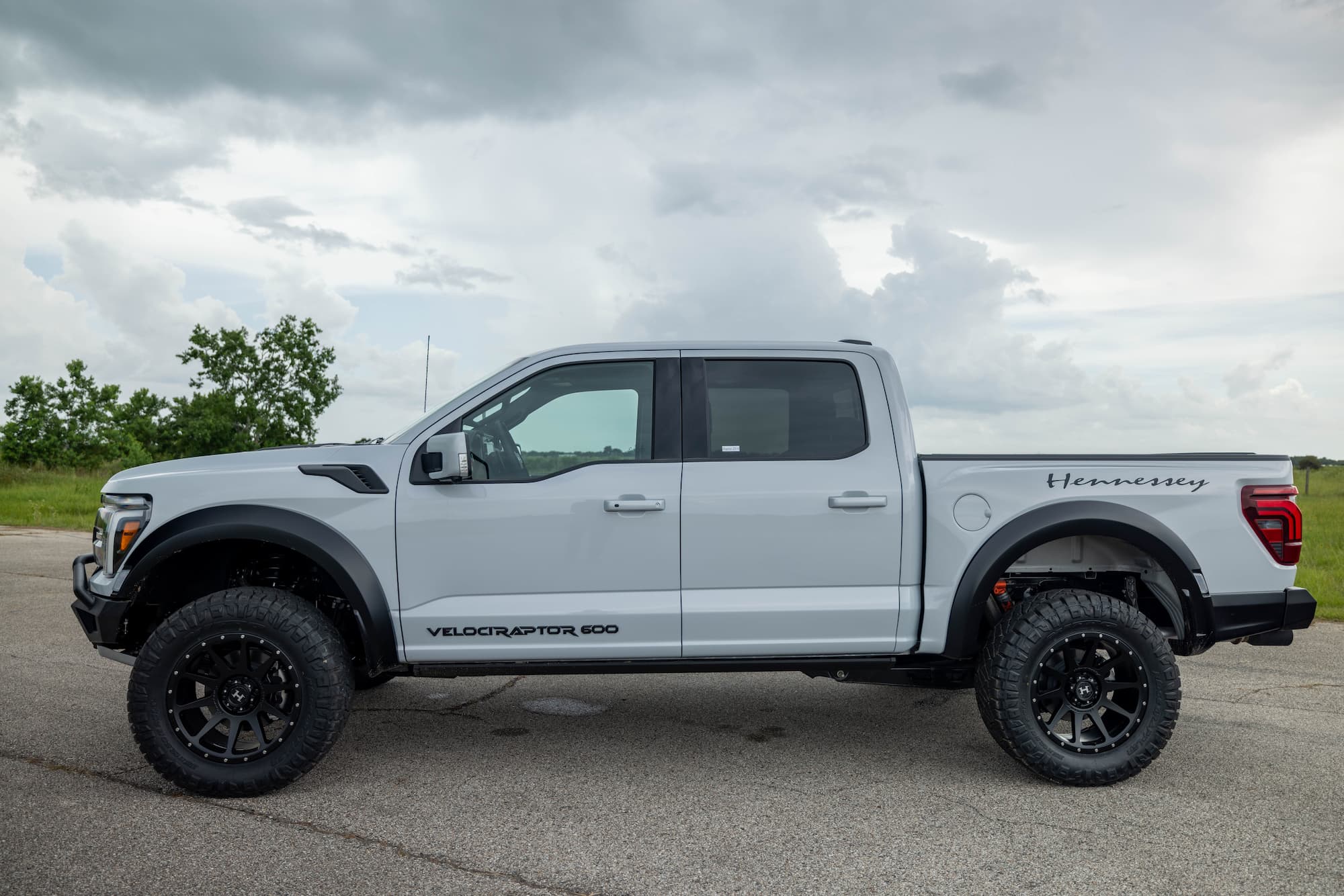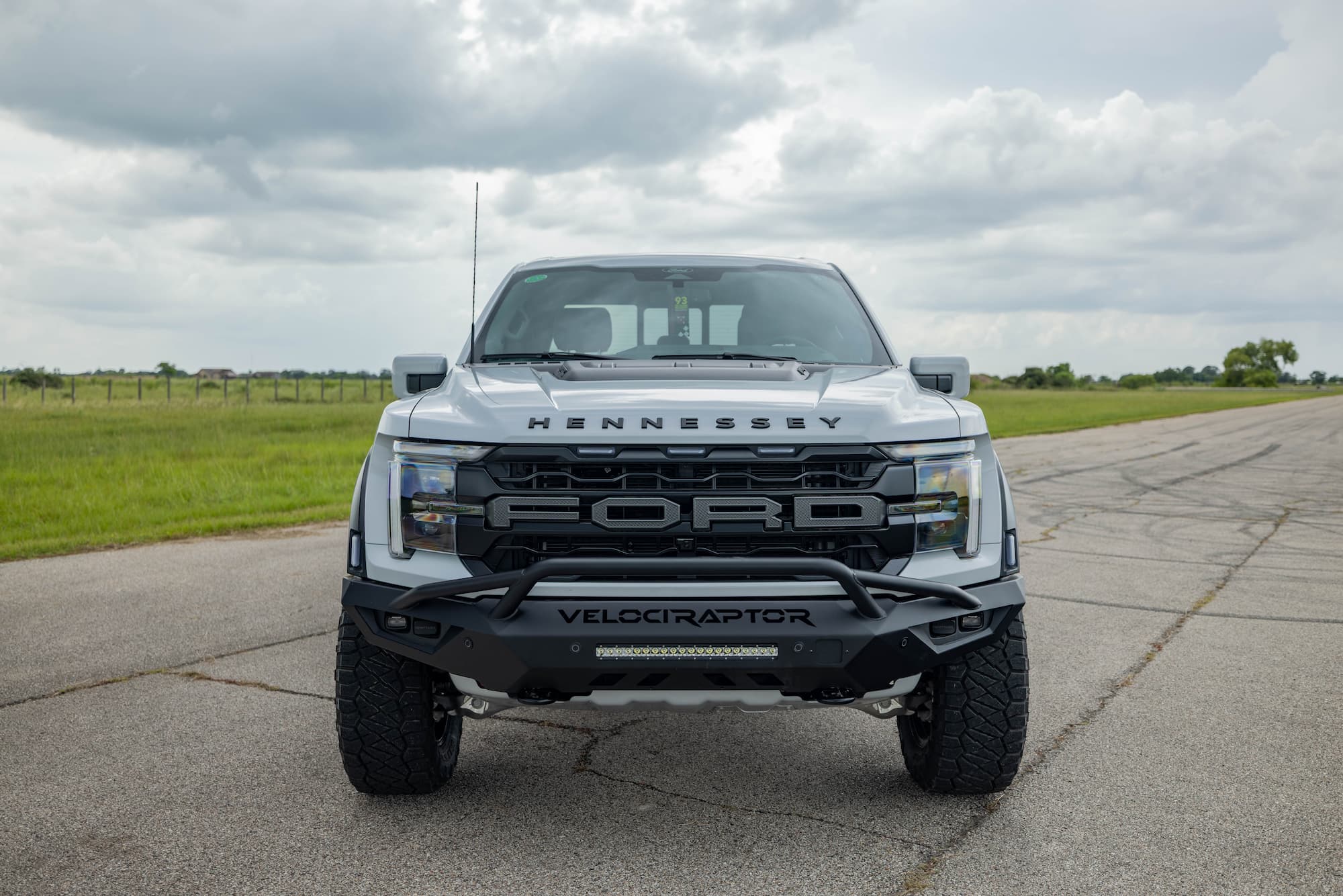 This 2025 Ford Raptor for sale of color Summit White and VIN 1FTFW1RG9SFB22516 is an upgraded version of the stock Ford Raptor that produces 558 horsepower and 672 lb-ft of torque, making it one of the most powerful trucks on the market. The stock Ford Raptor comes with a 3.5L EcoBoost V6 engine that produces 450 horsepower and 510 lb-ft of torque. The Hennessey VelociRaptor 600 upgrade adds a intercooler piping upgrade, VelociRaptor front and rear bumper, 35″ tires, and other performance-enhancing components. The result is a significant increase in power and torque, which translates into improved acceleration, handling, and braking. The Hennessey VelociRaptor 600 Ford Raptor is a great choice for anyone who wants a powerful and luxurious truck. It offers the best of both worlds: performance and refinement.
