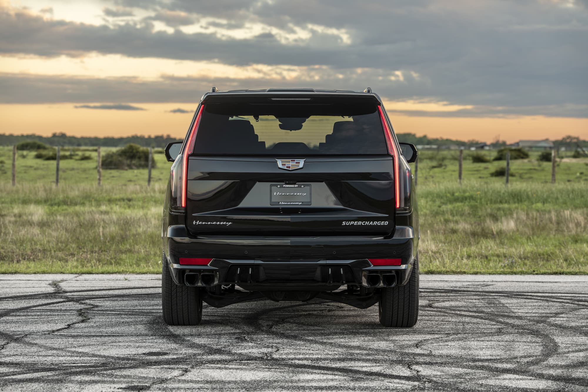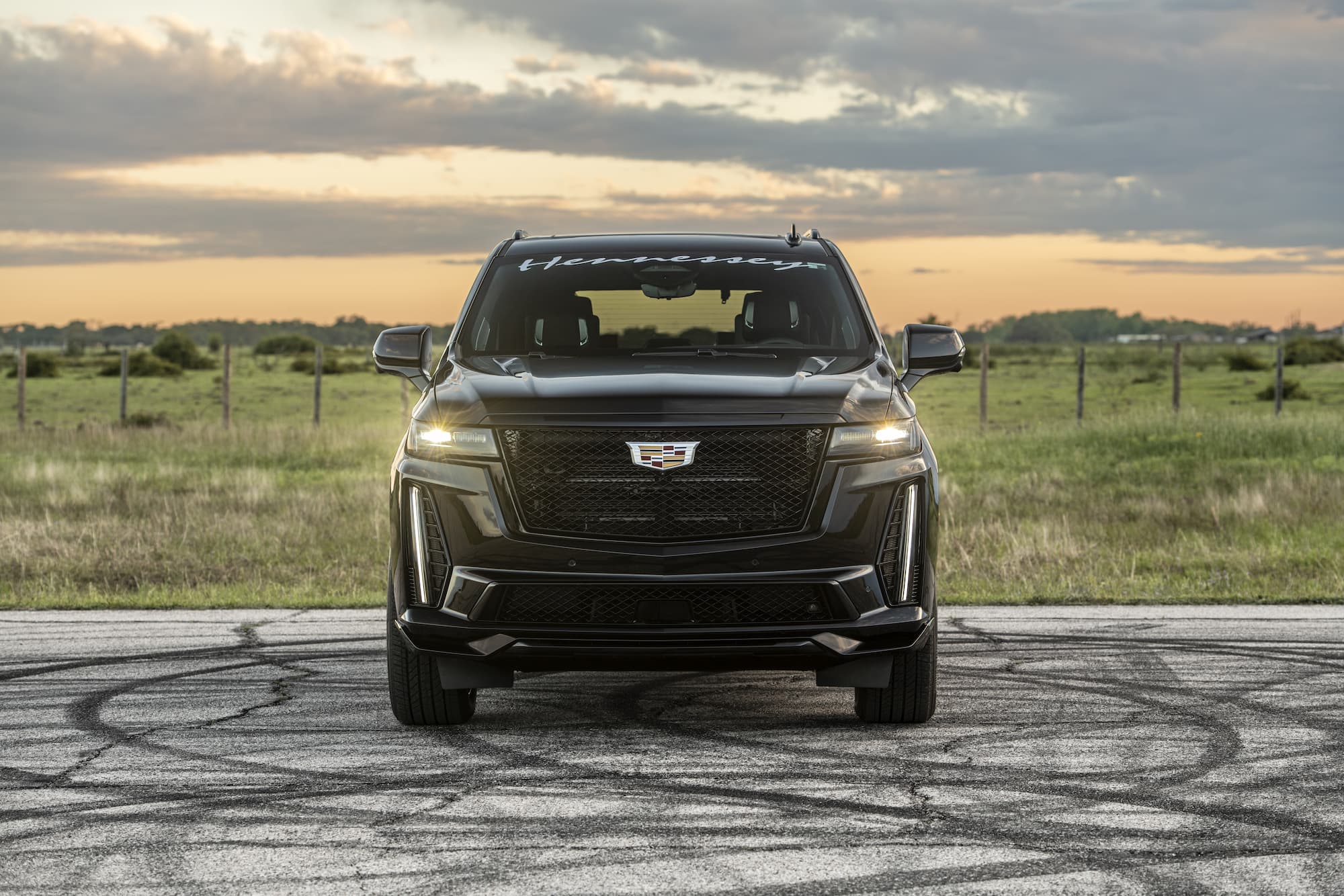 This 2026 Cadillac Escalade-V for Sale is a modified version of the stock Escalade-V by Hennessey with Black exterior and with VIN 1GYS9HK97TR100342. It comes with performance enhancements including an upgraded supercharger system, high-flow air induction, upgraded intake and exhaust valves, High-flow Catalytic Converters, plus Hennessey’s engine management calibration. The H1000 Escalade-V delivers 1,005 bhp to achieve with supercar-like performance.